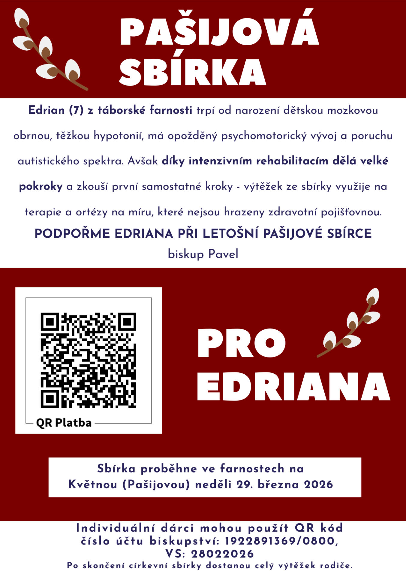 29. 3. 2026 v 10:45 hodin – Květná neděle, mše sv. se svěcením ratolestí, koná se Pašijová sbírka
